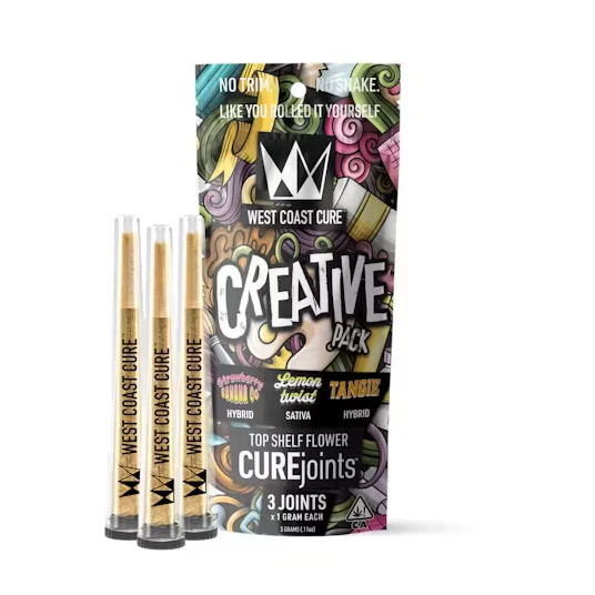 The CUREjoints Creative Pack provides a 3-Jay offering for the artistically inclined. Created from some of the most aromatic hybrids available, this pack of 1-gram joints represents an uplifting and motivational experience. A great choice for artists, musicians, or anyone looking for inspiration, these joints are a delightful way to empower your creative moments.